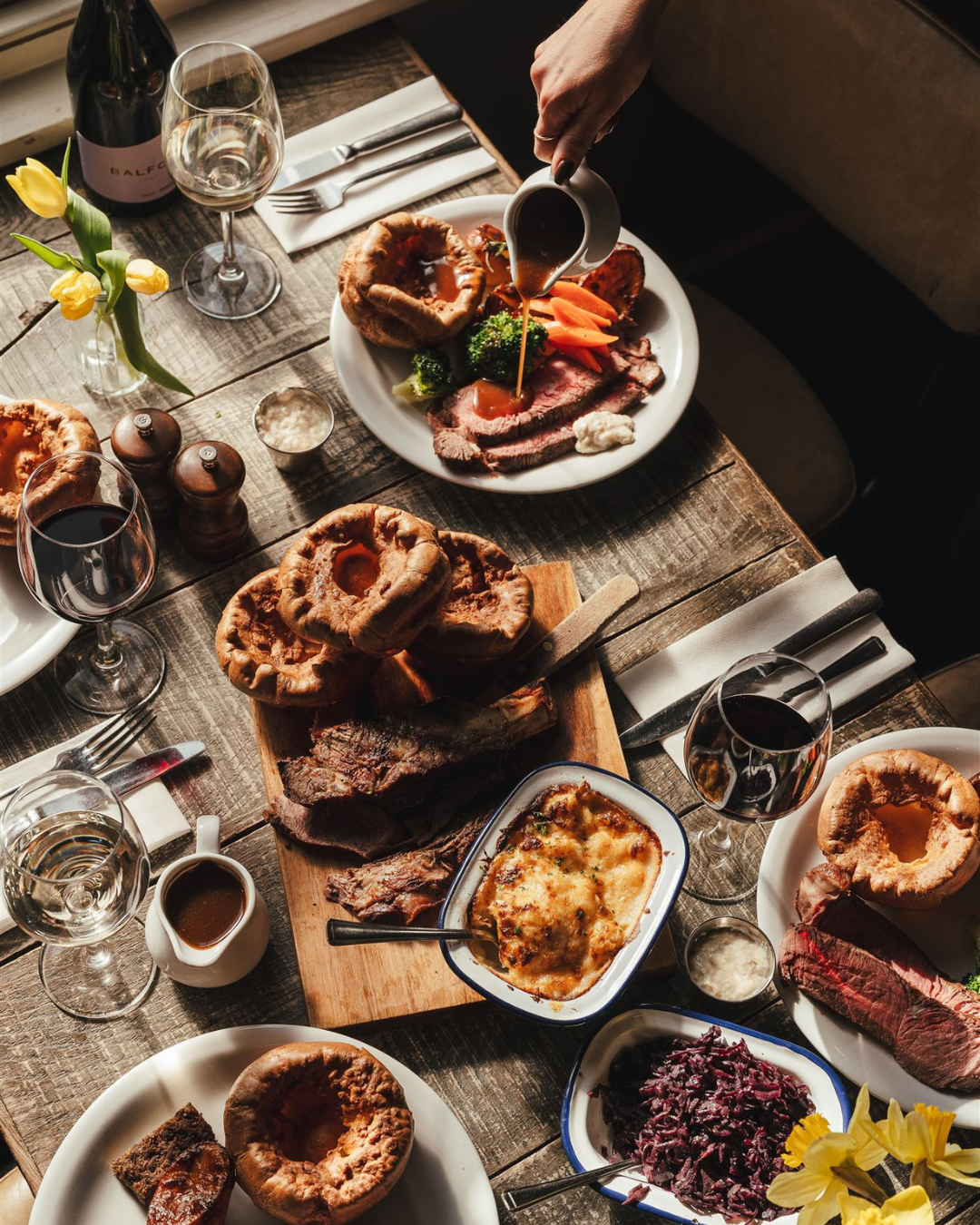 Forget the stress, ditch the oven gloves, and let us take care of Christmas. Our chefs are cooking up a traditional four-course feast: from pressed ham hock to scallops, turkey with pigs in blankets, beef Wellington, a stunning wild mushroom wellington for plant-based guests, and of course, Christmas pudding to finish.