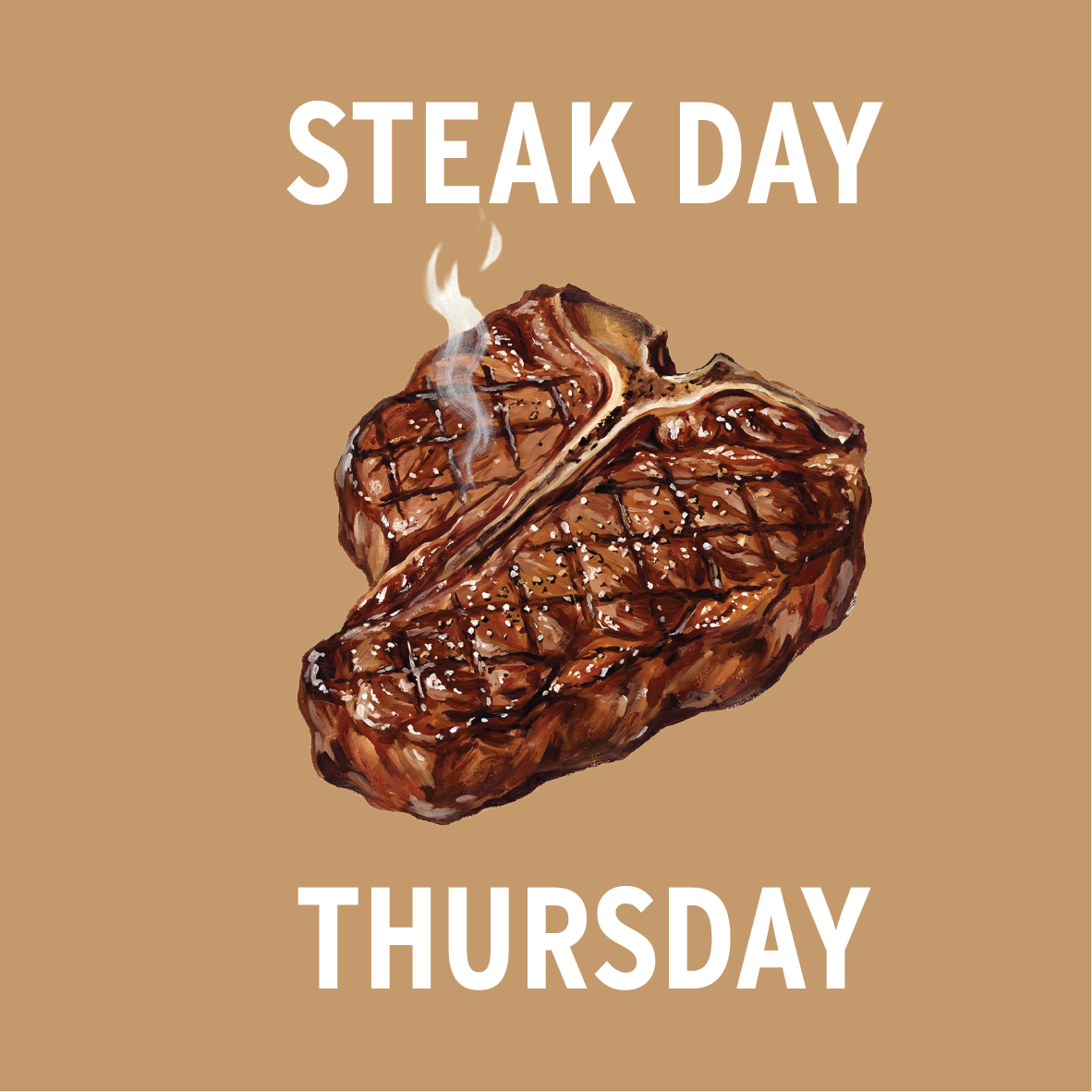 Ribeye or Sirloin steak with fries, salad and a drink* for just £17.50 every Thursday.